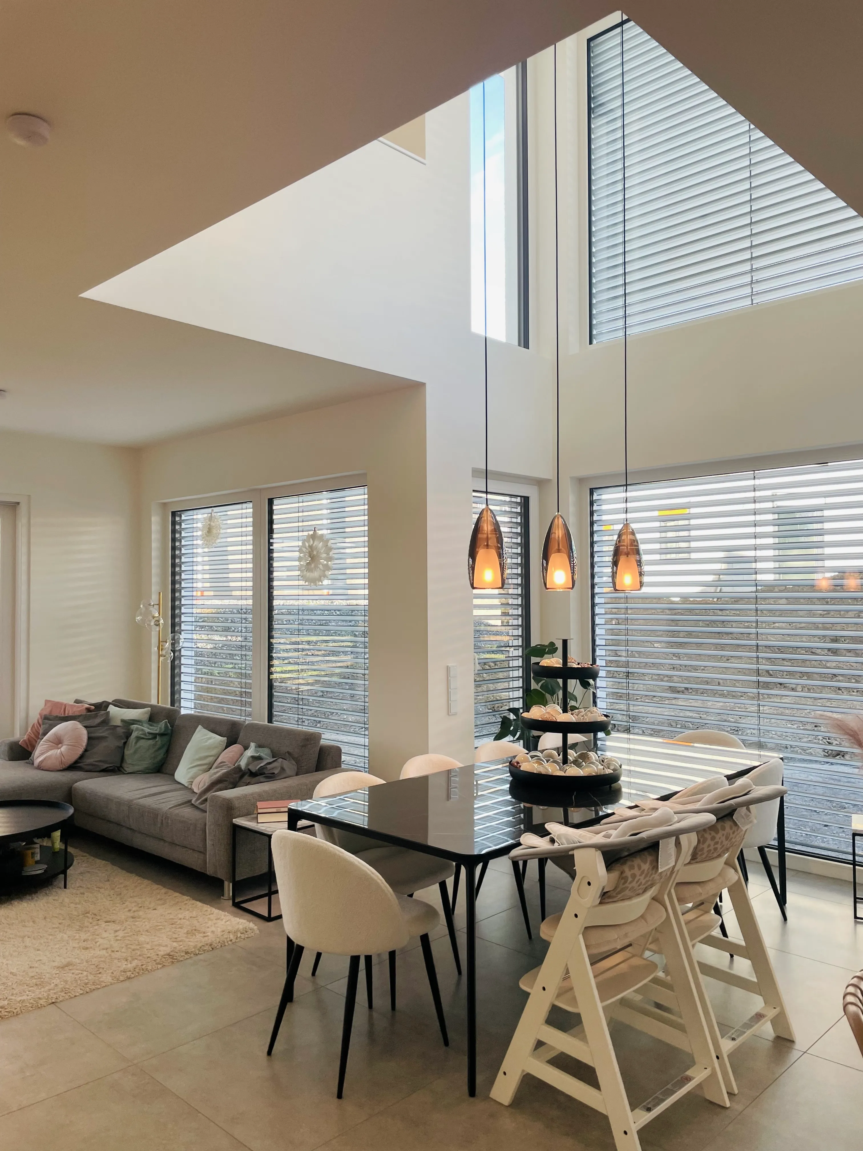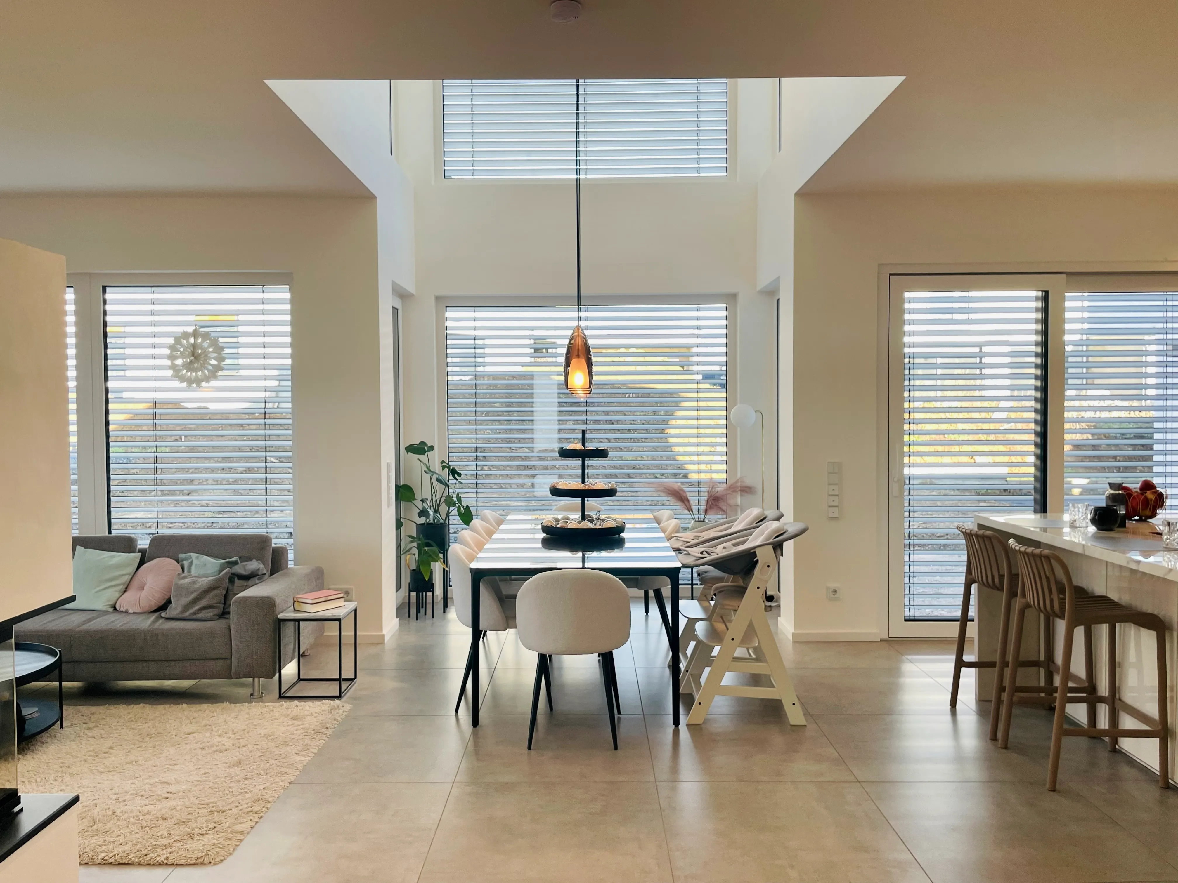 „wir sind so glücklich in unserem Traumhaus mitten in der Natur… die großzügigen offenen Räume, lichtdurchflutet… es gibt so viele unterschiedliche Sitzplätze und Wohlfühlecken mit Blick in’s Grüne. Wir wollen nicht mehr weg und genießen die Lebensqualität Tag für Tag!“
